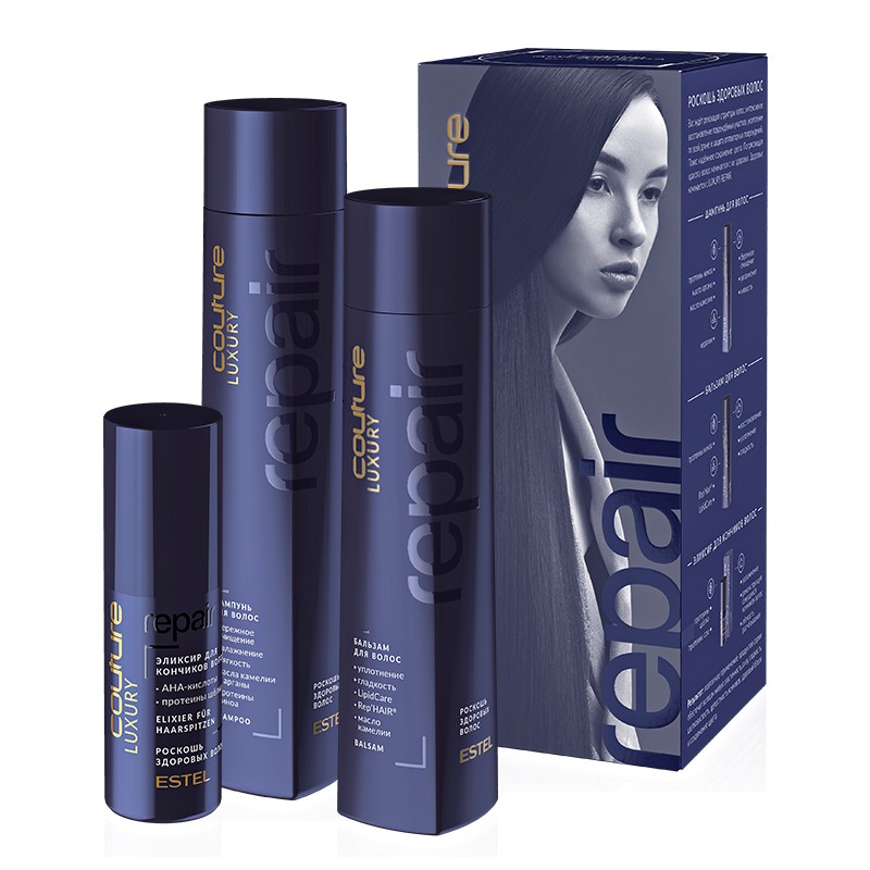 Set promo Regenerarea parului deteriorat cu proteine Complex RepHAIR și LipidCare LUXURY REPAIR ESTEL HAUTE COUTURE (Sampon, Balsam, Elixir)