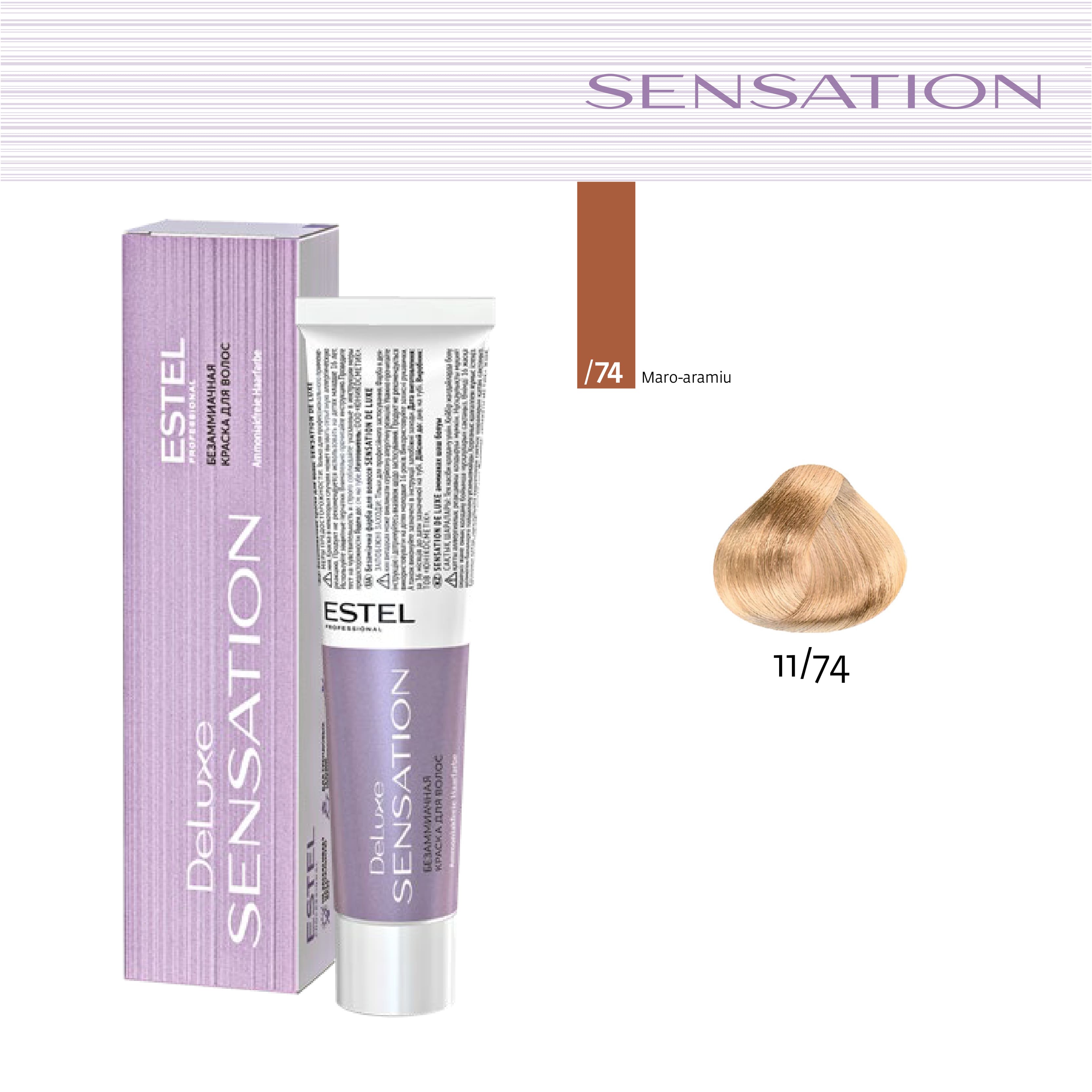 Vopsea fara amoniac pentru par DE LUXE SENSATION, 11/74 Ultra blond maro-aramiu, 60 ml