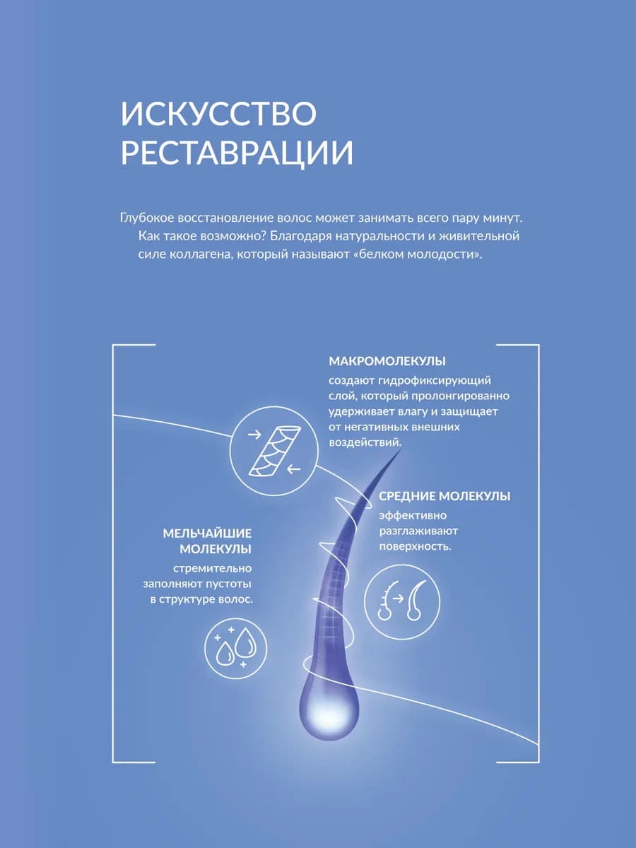 Activ saturează părul cu colagen, restabilește structura din interior și creează pe suprafața părului un ecran protector ce va permite respirabilitatea, și previne pierderea umidității. Menține elasticitatea naturală a părului, făcându-l neted, strălucitor, dens și plin de forță.