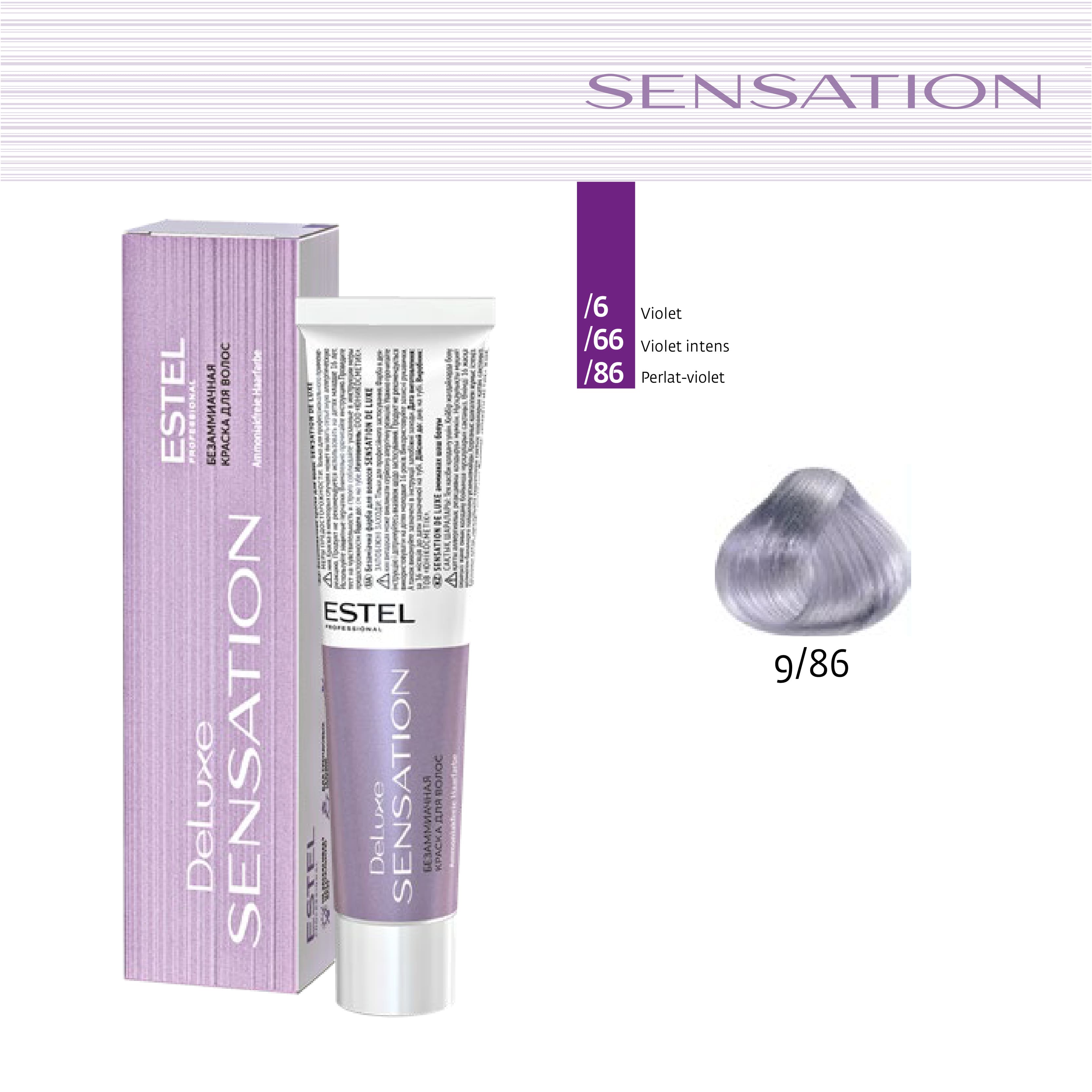 Vopsea fara amoniac pentru par DE LUXE SENSATION, 9/86 Blond perlat-violet, 60 ml