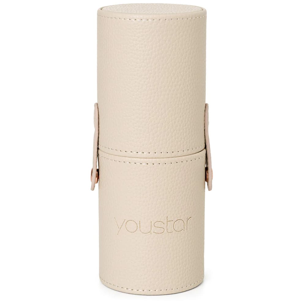 Colecția glamuroasă de pensule de machiaj de la Youstar, cu accente elegante rose-gold, vine ambalată într-un tub practic din piele ecologică — accesoriul perfect in călătorie.
