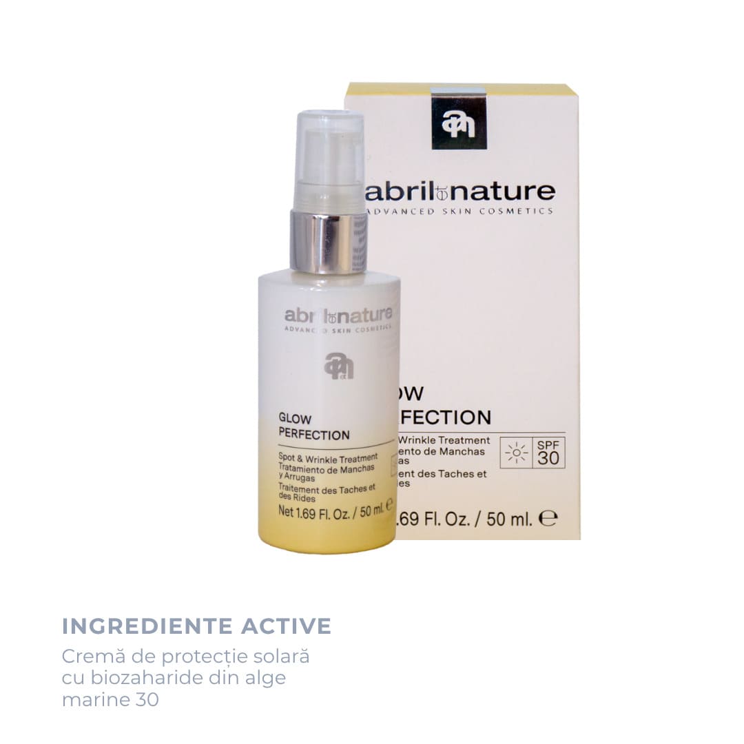 Glow Perfection от Abril et Nature — это ежедневный уход, разработанный для кожи от 30 до 35 лет и старше, сочетающий в себе действие против пигментных пятен и омолаживающий эффект. Формула воздействует на существующие пигментные пятна и предотвращает появление новых, одновременно повышая упругость, эластичность и плотность кожи.