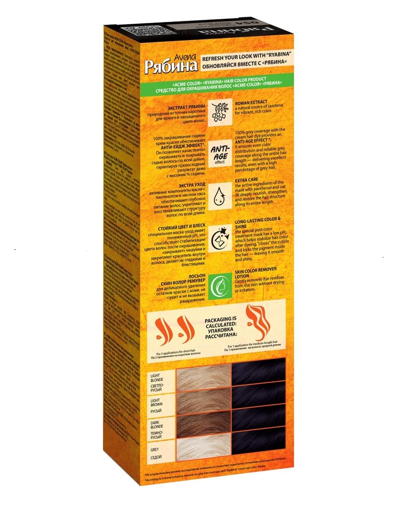 Набор стойкой крем-краски «Рябина AVENA» содержит: