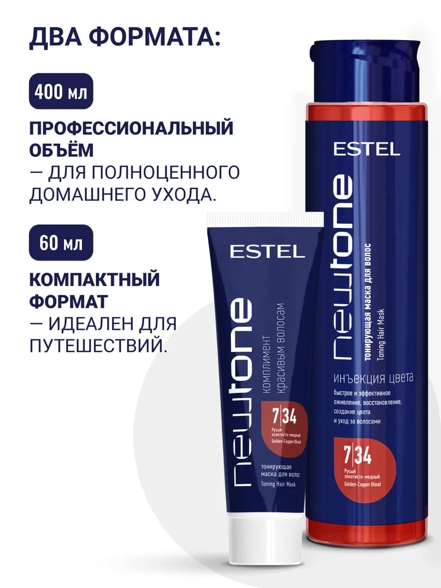 Тонирующая маска для волос Estel NewTone, 7/34 Русый золотисто-медный, 400 мл