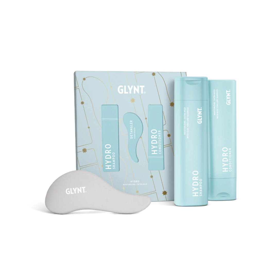 Набор для всех типов волос HYDRO Christmas 2025 GLYNT (Шампунь 250 мл, Бальзам 200 мл, Щетка)