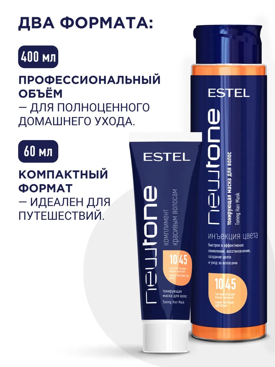 Тонирующая маска для волос Estel NewTone, 10/45 Светлый блондин медно-красный, 60 мл
