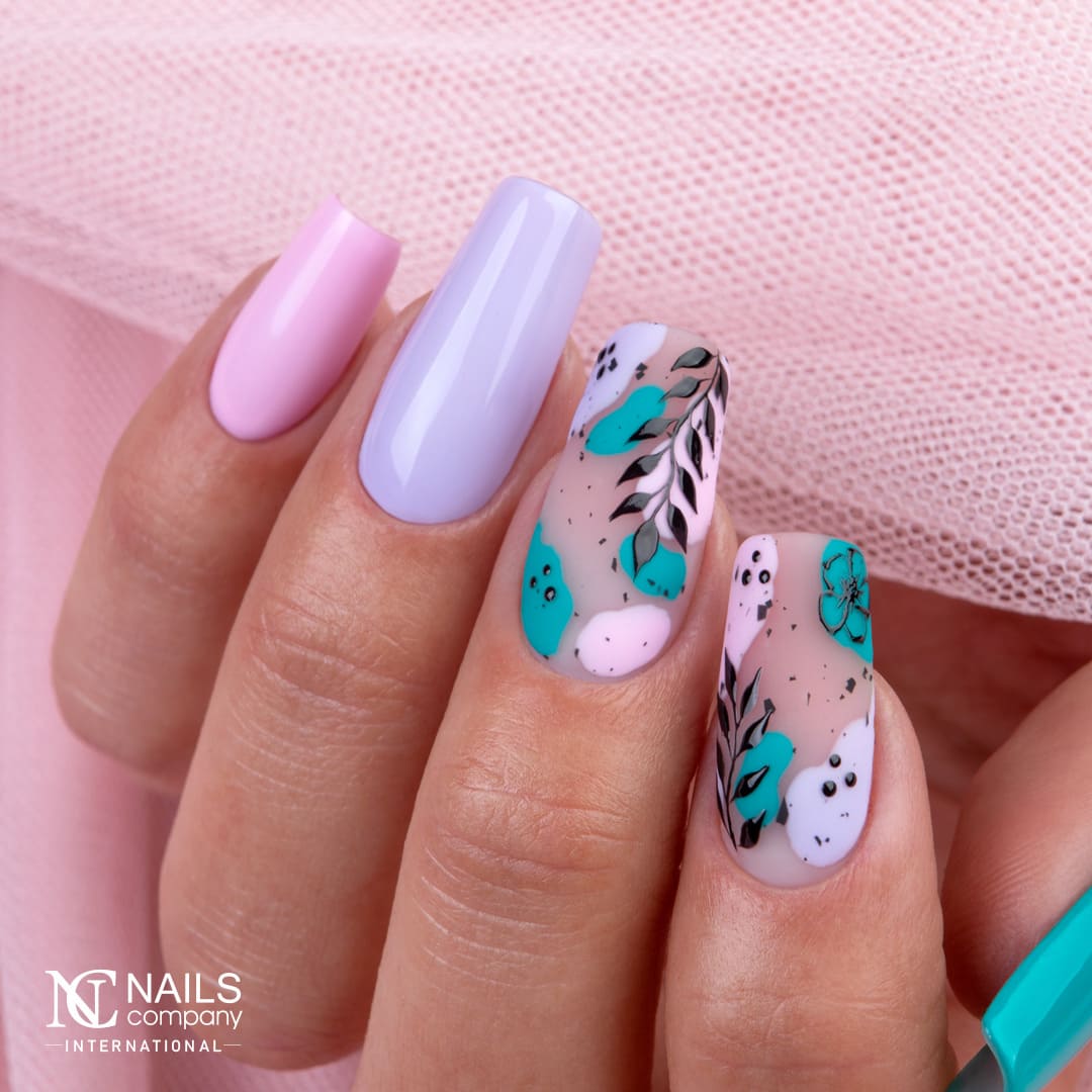 Потому что это сочетание знакомого нам лака для ногтей и цветных гелей. Такое сочетание позволяет получить высокопигментированный полуглянцевый лак для ногтей. Вязкость и покрывающая способность, которыми обладают эти лаки, очень помогают нам в технике комбинированного маникюра. Эти лаки не затекают в складки или под эпонихий.