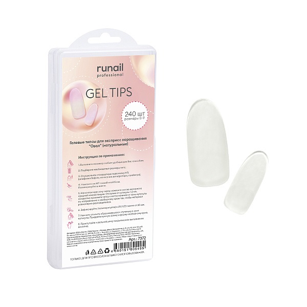 Гелевые типсы для экспресc наращивания Runail №7372, 240шт 'Овал'(натуральные)